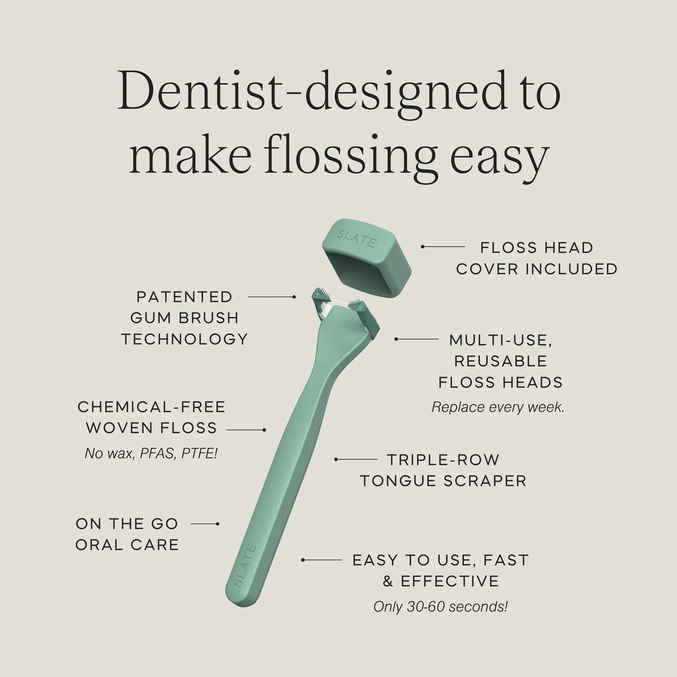 Ditch wasteful plastic floss picks and use Slate's Mini Manual Flosser instead!